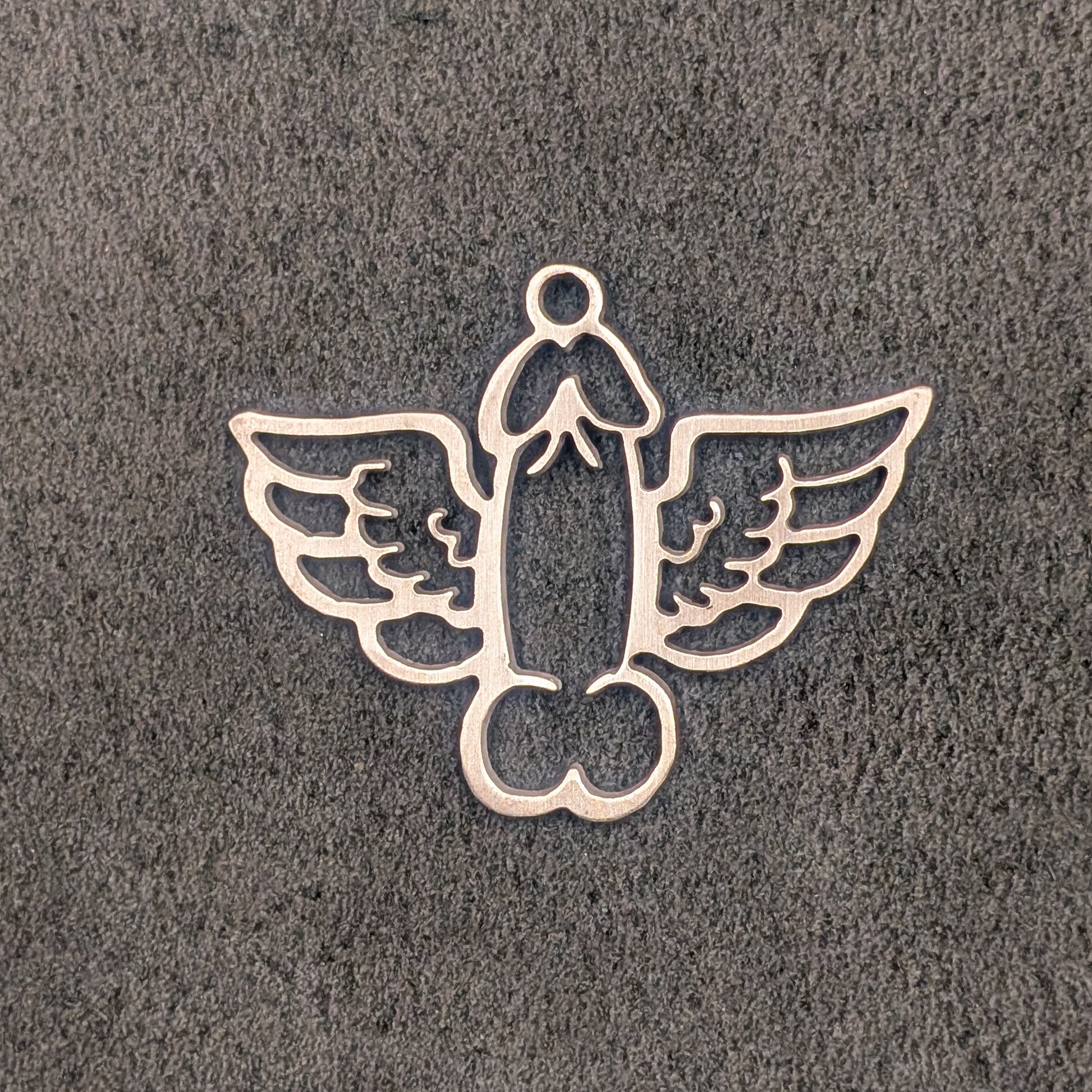 Tom of Finland® X Cockeye Kink Flying Dick pendant . Cut out of 1/8" (11 gauge) stainless steel.